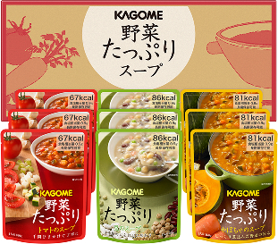 | カゴメ 野菜たっぷりスープ | 約300円〜 | 優しい味・種類豊富 | セット販売 | カロリー低めで続けやすい |